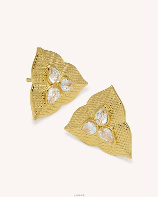 كو JW PEI أقراط على شكل أوراق الشجر مطلي بالذهب عيار 18 قيراط مع زركون أبيض الأقراط 6604F361
