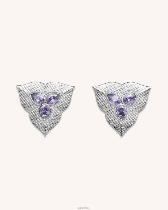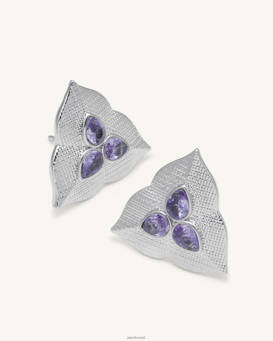 كو JW PEI أقراط على شكل أوراق الشجر 18 قيراط مطلي بالذهب الأبيض مع زركون بنفسجي الأقراط 6604F364