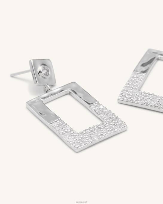 كو JW PEI أقراط مستطيلة هندسية مخرمة مطلي بالذهب الأبيض عيار ١٨ قيراطًا وزركون أبيض الأقراط 6604F389