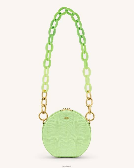 كو JW PEI حقيبة كتف دائرية بسلسلة متدرجة أكريليك لونا سحلية الجير الخضراء حقيبة كتف 6604F66
