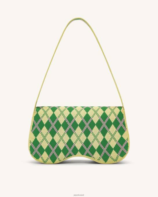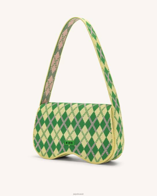كو JW PEI حقيبة كتف محبوكة الضوء الأصفر والأخضر والوردي حقيبة كتف 6604F115