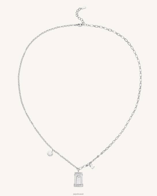 كو JW PEI قلادة قلادة القوس الروماني مطلي بالذهب الأبيض عيار ١٨ قيراطًا وزركون أبيض قلادة 6604F350