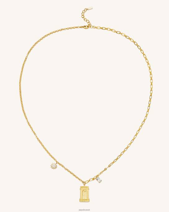كو JW PEI قلادة قلادة القوس الروماني مطلي بالذهب عيار 18 قيراط مع زركون أبيض قلادة 6604F348