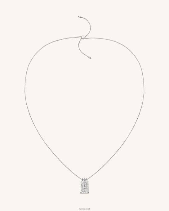 كو JW PEI قلادة قلادة القوس الصغيرة الرومانية مطلي بالذهب الأبيض عيار ١٨ قيراطًا وزركون أبيض قلادة 6604F347
