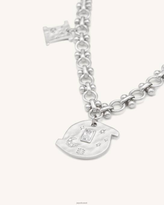 كو JW PEI كوزموس جولة متعددة سحر قلادة مطلي بالذهب الأبيض عيار ١٨ قيراطًا وزركون أبيض قلادة 6604F368