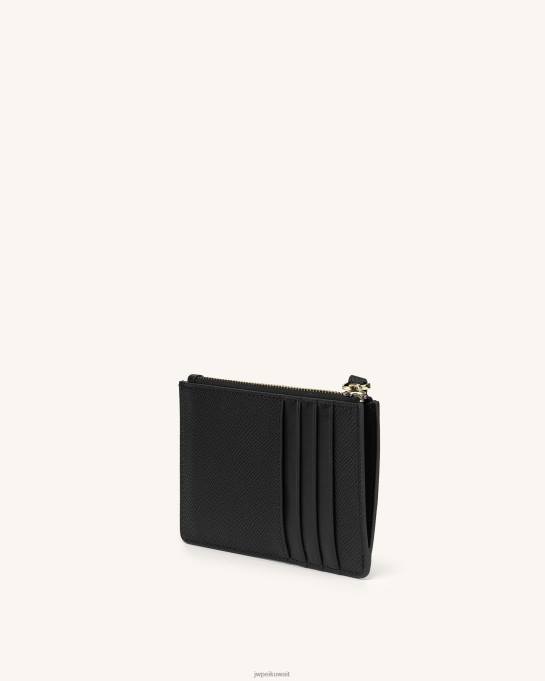 كو JW PEI حامل بطاقة كوين مضغوط جلد نباتي محبب أسود حامل البطاقة 6604F288